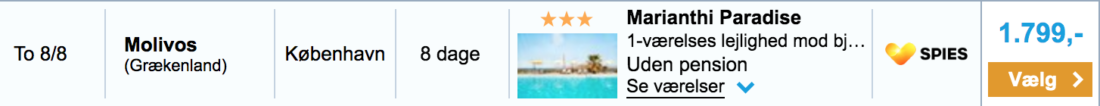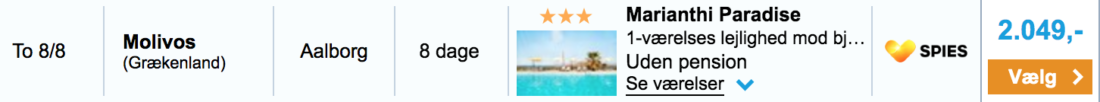 1 uges sommerferie i Grækenland i august, inklusiv flybilletter, for UNDER 2000 DKK/pris. Så bliver det vidst ikke billigere. I sidste uge, delte jeg et tilbud til selvsamme 3* Marianthi Paradise Hotel på Lesbos, som var et last minute tilbud. Men nu udbydes der så dette vilde tilbud, med afgang i starten af august. Så hvis I endnu ikke har fået bestilt jeres sommerferie, så er dette et virkeligt godt tilbud!